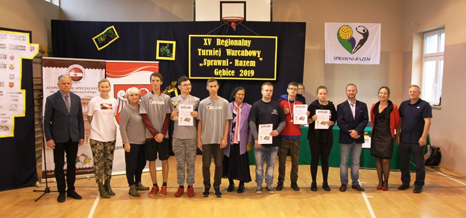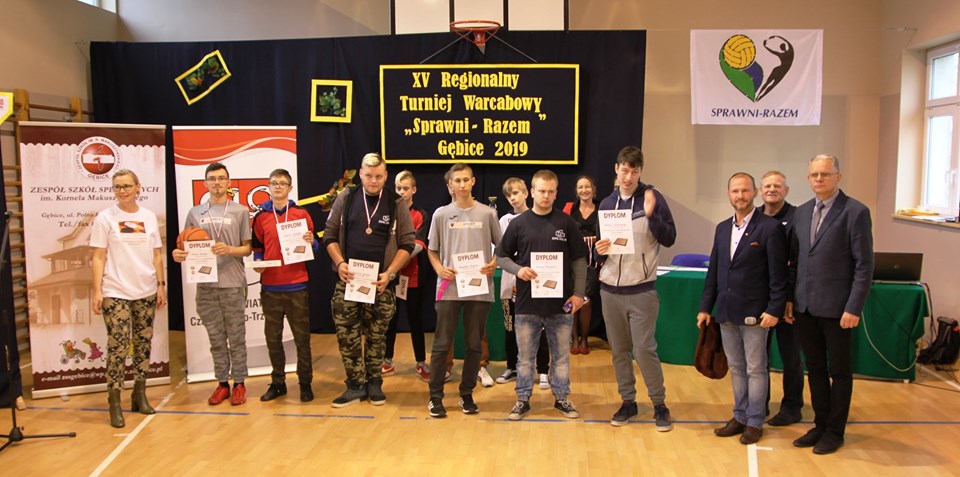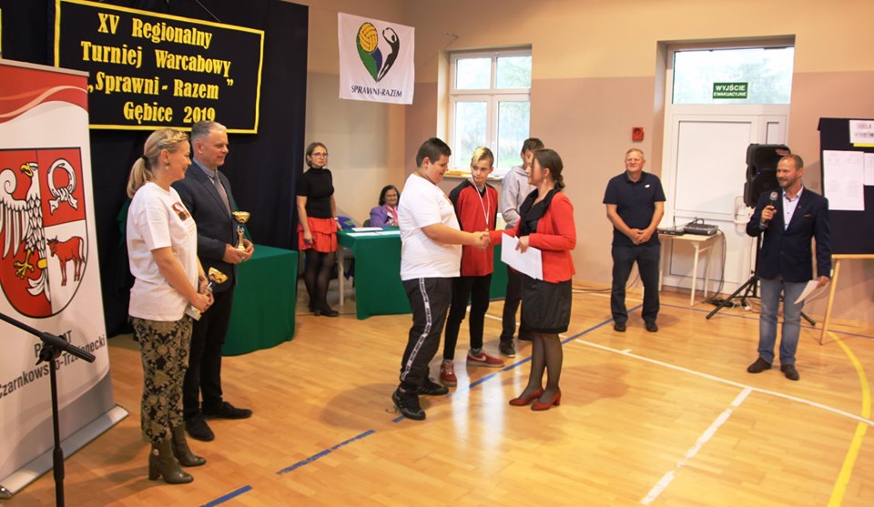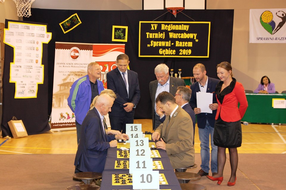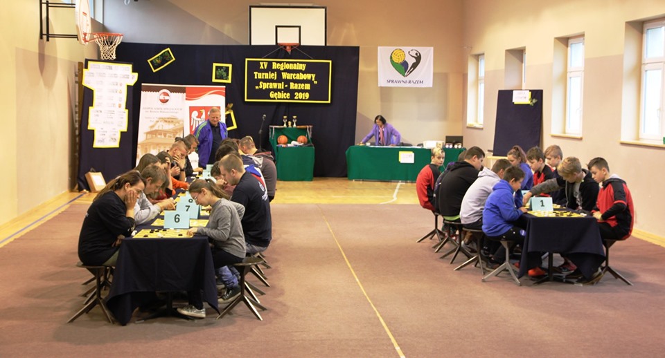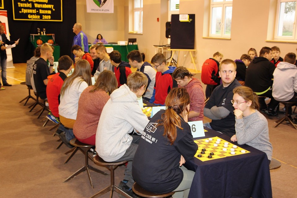 Dnia 24 października 2019r. w Zespole Szkół Specjalnych im. Kornela Makuszyńskiego w Gębicach odbył się XV Regionalny Turniej Warcabowy „Sprawni Razem". Wzięło w nim udział trzydziestu zawodników z siedmiu szkół iplacówek województwa wielkopolskiego: z Piły, Wągrowca, Starej Łubianki, Jastrowia, Czarnkowa oraz z Gębic. Jubileuszowy spotkanie swoją obecnością zaszczycili: p. Andrzej Tadla – burmistrz Czarnkowa, p. Bolesław Chwarścianek - wójt gminy Czarnków, p. Ryszard Bilski - dyrektor Gminnego Zespołu Obsługi Szkół i Przedszkoli w Lubaszu, p. Maciej Strawa – Nadleśniczy Nadleśnictwa Sarbia oraz przedstawiciele Nadnoteckiego Stowarzyszenia Społeczno-Sportowego Sprawni-Razem z Piły: p. Piotr Swadzyniak – prezes zarządu oraz p. Aleksandra Błażejewska i p. Jerzy Kucharski. Gospodarzem rozgrywek była p. Alicja Kasperczak – dyrektor Zespołu Szkół im. K. Makuszyńskiego w Gębicach, a nad prawidłowym przebiegiem zawodów czuwał p. Janusz Kus – sędzia główny.