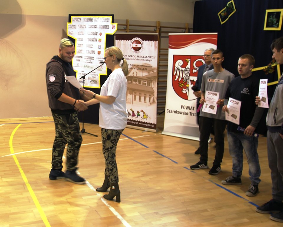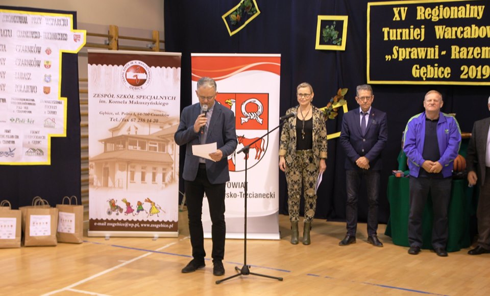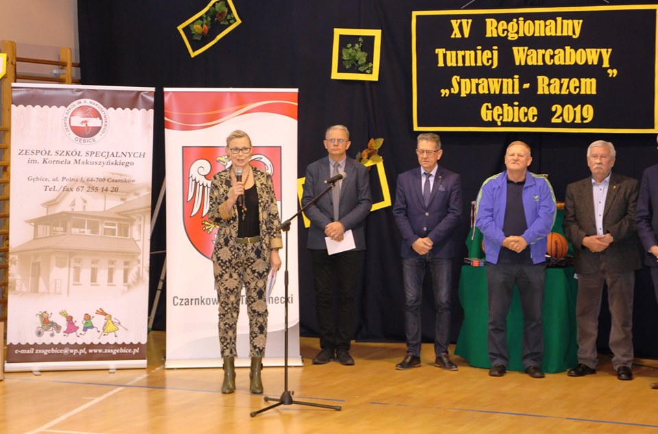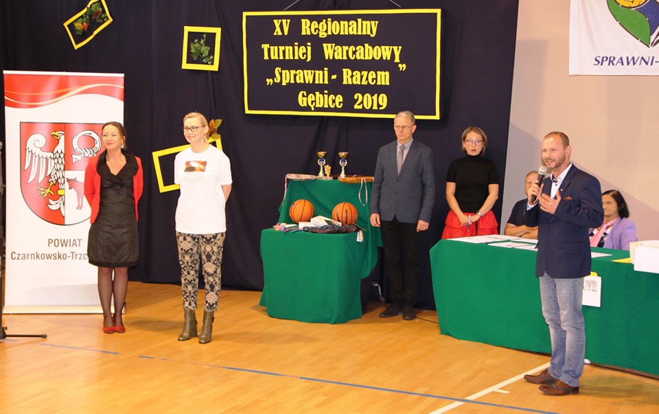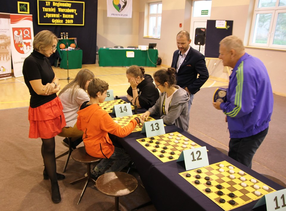 Dnia 24 października 2019r. w Zespole Szkół Specjalnych im. Kornela Makuszyńskiego w Gębicach odbył się XV Regionalny Turniej Warcabowy „Sprawni Razem". Wzięło w nim udział trzydziestu zawodników z siedmiu szkół iplacówek województwa wielkopolskiego: z Piły, Wągrowca, Starej Łubianki, Jastrowia, Czarnkowa oraz z Gębic. Jubileuszowy spotkanie swoją obecnością zaszczycili: p. Andrzej Tadla – burmistrz Czarnkowa, p. Bolesław Chwarścianek - wójt gminy Czarnków, p. Ryszard Bilski - dyrektor Gminnego Zespołu Obsługi Szkół i Przedszkoli w Lubaszu, p. Maciej Strawa – Nadleśniczy Nadleśnictwa Sarbia oraz przedstawiciele Nadnoteckiego Stowarzyszenia Społeczno-Sportowego Sprawni-Razem z Piły: p. Piotr Swadzyniak – prezes zarządu oraz p. Aleksandra Błażejewska i p. Jerzy Kucharski. Gospodarzem rozgrywek była p. Alicja Kasperczak – dyrektor Zespołu Szkół im. K. Makuszyńskiego w Gębicach, a nad prawidłowym przebiegiem zawodów czuwał p. Janusz Kus – sędzia główny.