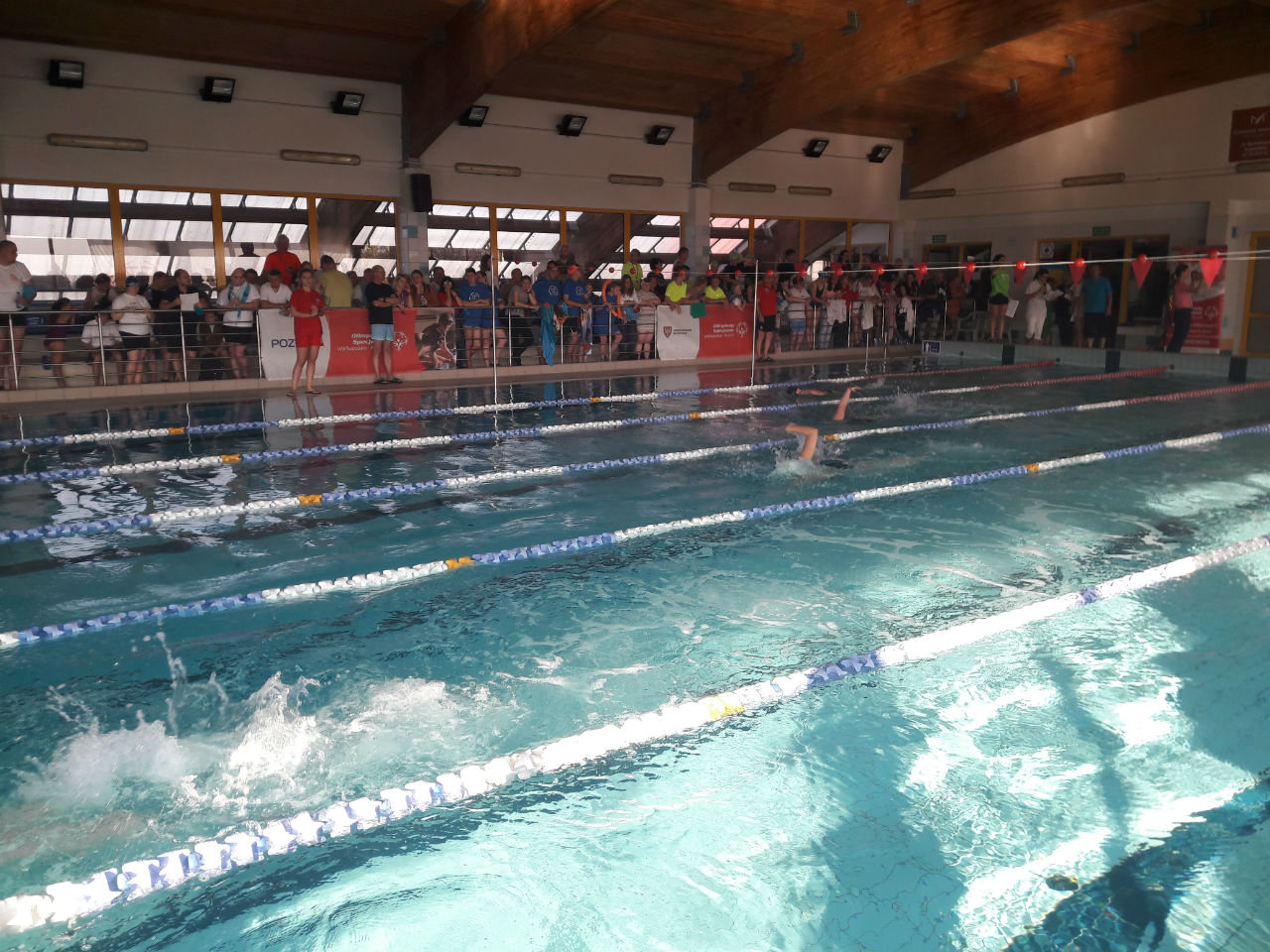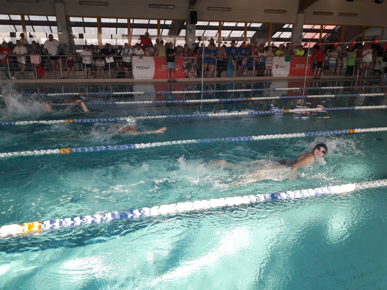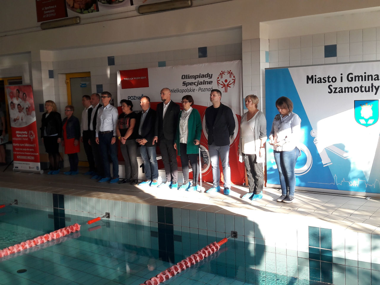 7 listopada br. w Szamotułach, odbył się XXII Regionalny Mityng Pływacki Olimpiad Specjalnych. Ta coroczna edycja zawodów pływackich ponownie przyciągnęła do Szamotuł ogromną rzeszę uczniów i uczennic szkół specjalnych oraz podopiecznych warsztatów terapii zajęciowej i domów pomocy społecznej z całego województwa wielkopolskiego. Jak zwykle naszą szkołę reprezentowała uczennica Aleksandra Kasperek - nasza pływająca mistrzyni. Po dotarciu na krytą pływalnię w Szamotułach spotkaliśmy mamę Oli, która jak co roku przyjechała, aby dopingować i motywować swoją córkę. Po oficjalnej części i przemówieniach zaproszonych gości, nadszedł czas na wciągnięcie na maszt flagi Olimpiad Specjalnych Polska i na sportowe zmagania. Nasza zawodniczka wystartowała najpierw na dystansie 50 m. stylem dowolnym (były to kraul na piersiach), osiągając drugi czas swojego biegu, dzięki czemu zdobyła srebrny medal. Po półtoragodzinnej przerwie odbył się drugi start Oli - tym razem na dystansie 25 m. kraulem. Zdenerwowani, ściskając za Aleksandrę kciuki, krzyczeliśmy głośno podczas jej konkurencji, aby jeszcze bardziej ją zmobilizować. Reprezentantka Gębickiej Kornelówki płynęła jak ryba co sił i znów wywalczyła srebrny medal. Zadyszana, lecz szczęśliwa, po raz drugi tego dnia stanęła na drugim stopniu podium. Po zakończonych zawodach, wszyscy zjedli smaczny i pożywny posiłek przygotowany przez szamotulski Hotel Maraton oraz zrobili pamiątkowe zdjęcie.