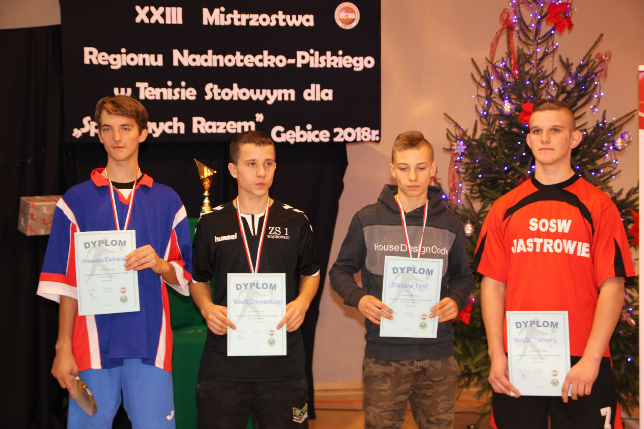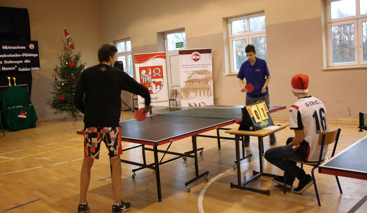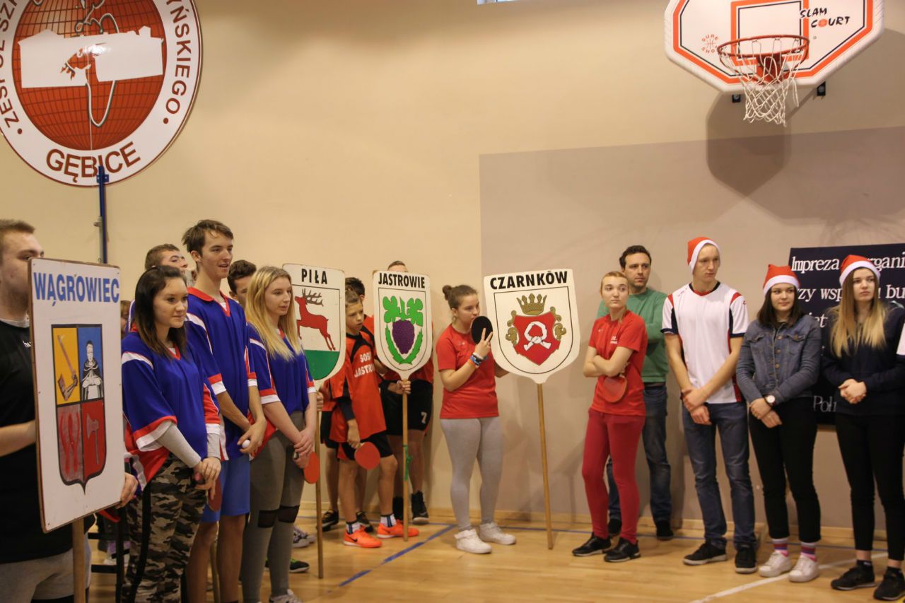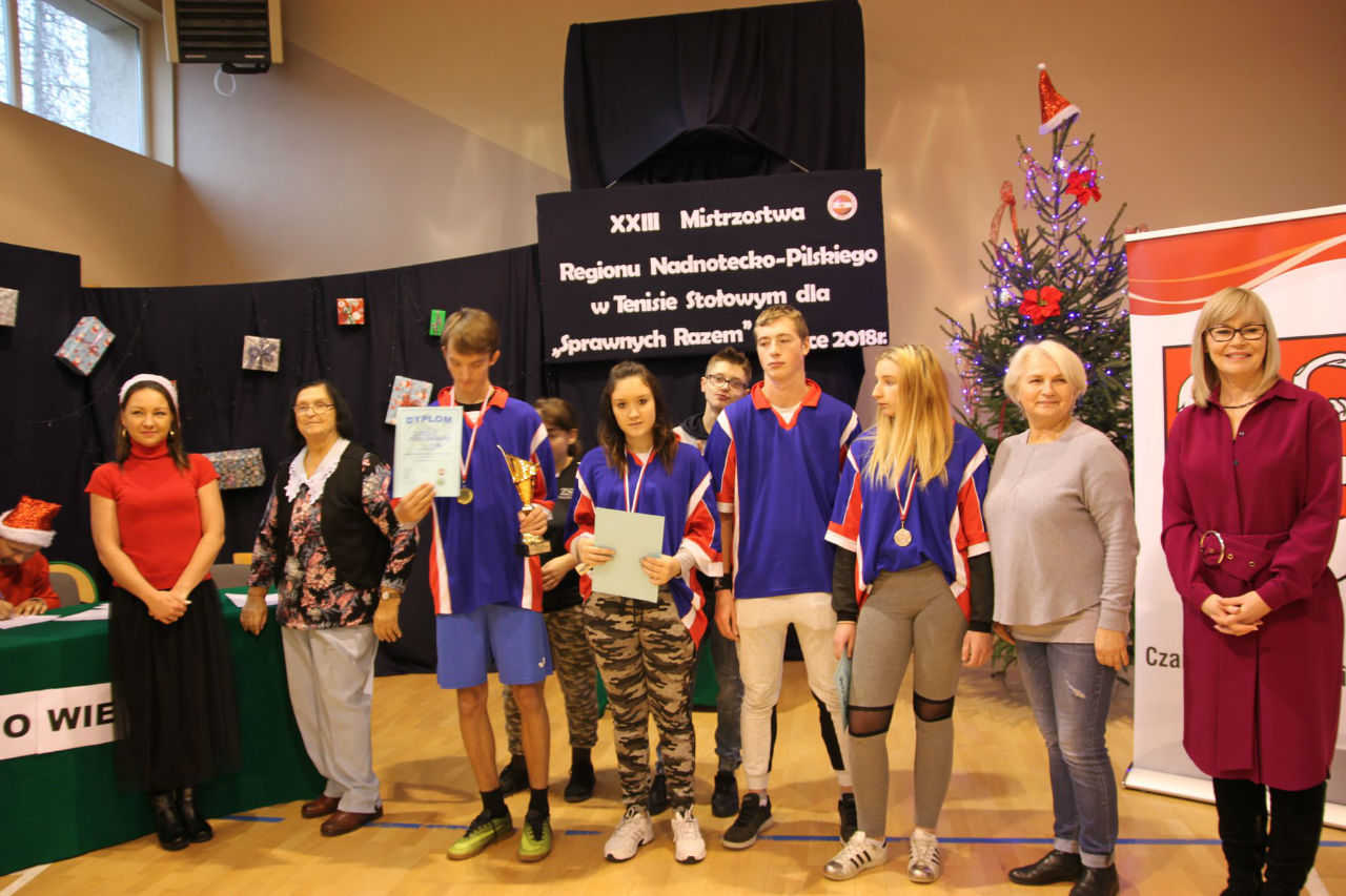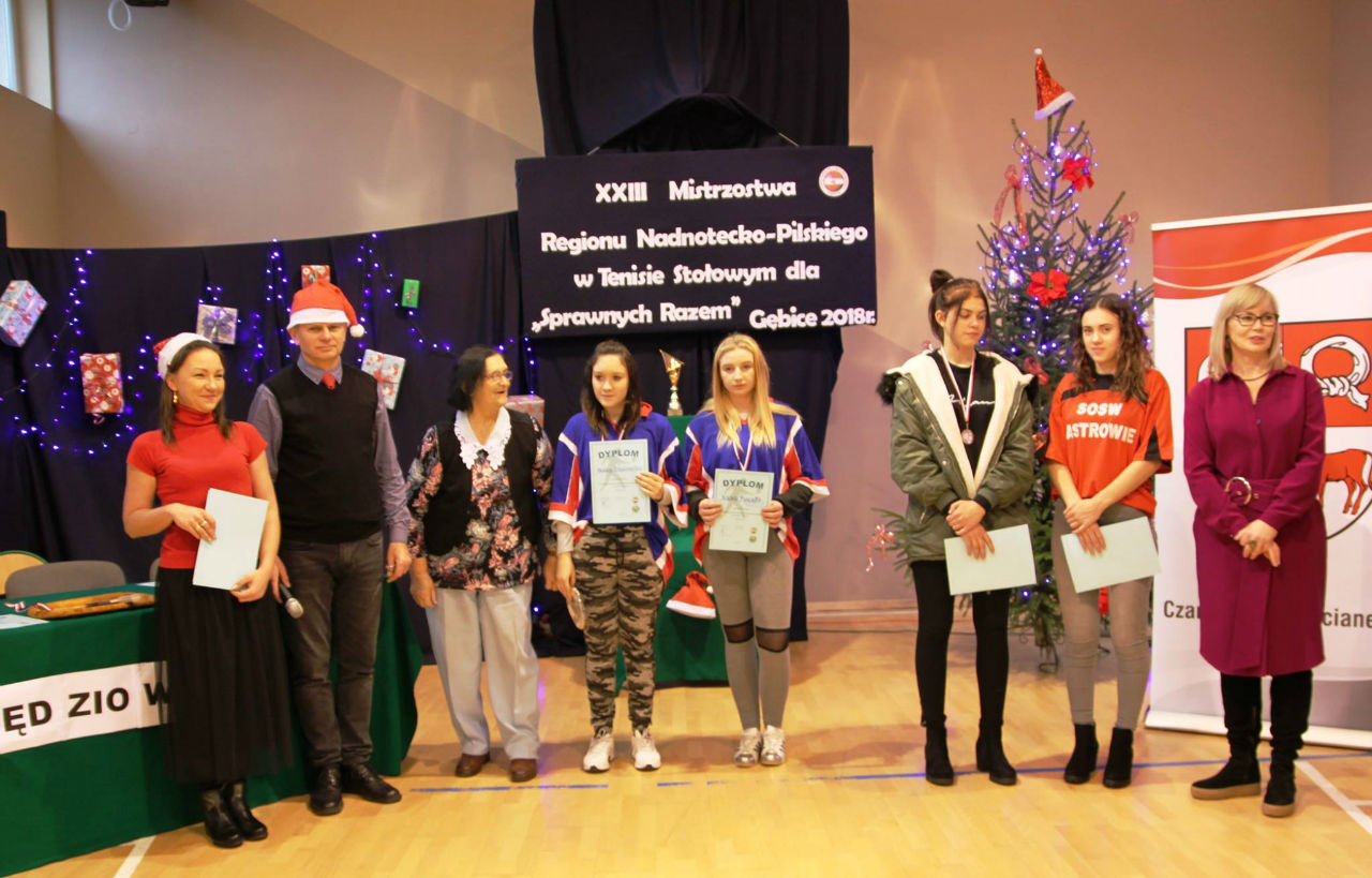 06 grudnia 2018 roku w Zespole Szkół im. Kornela Makuszyńskiego w Gębicach odbyły się XXIII Mistrzostwa Regionu Nadnotecko – Pilskiego dla „Sprawni – Razem" w Tenisie Stołowym. Kolejny raz ta impreza została sfinansowana przez Powiat Czarnkowsko - Trzcianecki oraz PHU Poli – Vet Sp. z o.o. w Czarnkowie. Podczas otwarcia zawodów byli obecni zaproszeni goście: prezes Związku Stowarzyszeń Społeczno-Sportowych – p. Aleksandra Błażejewska oraz wiceprezes tego stowarzyszenia – p. Jerzy Kucharski. Pani Aleksandra Błażejewska przedstawiła grupy sportowe wraz z ich opiekunami,