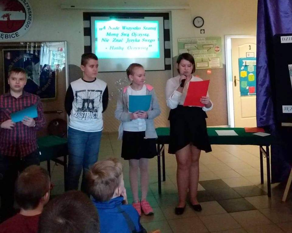 Na początek czworo uczniów zaprezentowało wzorcowe czytanie wiersza Małgorzaty Strzałkowskiej pt.: „Mowa polska" pełnego szalonych rymów, wymagających językowego mistrzostwa, by nie potknąć się w trakcie czytania. Następnie powołano dwie drużyny, przed którymi pojawiły się zadania wymagające nie lada gimnastyki językowej. Były to m. in. konkurencje polegające na zaznaczeniu poprawności w pisowni, łamańce językowe, odgadnięcie wysłuchanej gwary językowej i zagadki. Uczniowie na ten dzień przygotowali również plakaty, które ozdobiły klasowe drzwi i których głównym przesłaniem było hasło W krainie języka polskiego. Na plakatach przedstawiono najczęściej popełniane przez Polaków błędy, zasady ortograficzne wraz z wyjątkami, alfabet, przysłowia polskie, najważniejszych poetów i pisarzy, a także plakaty mówiące „Stop wulgaryzmom!" Podczas dużej przerwy każdy mógł wziąć udział w konkursie przeprowadzonym przez Samorząd Uczniowski Na tropie kropki, odpowiadając na pytanie dotyczące języka polskiego.