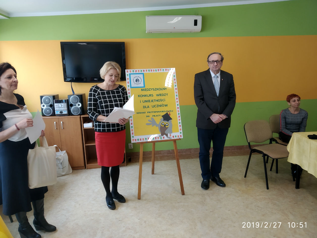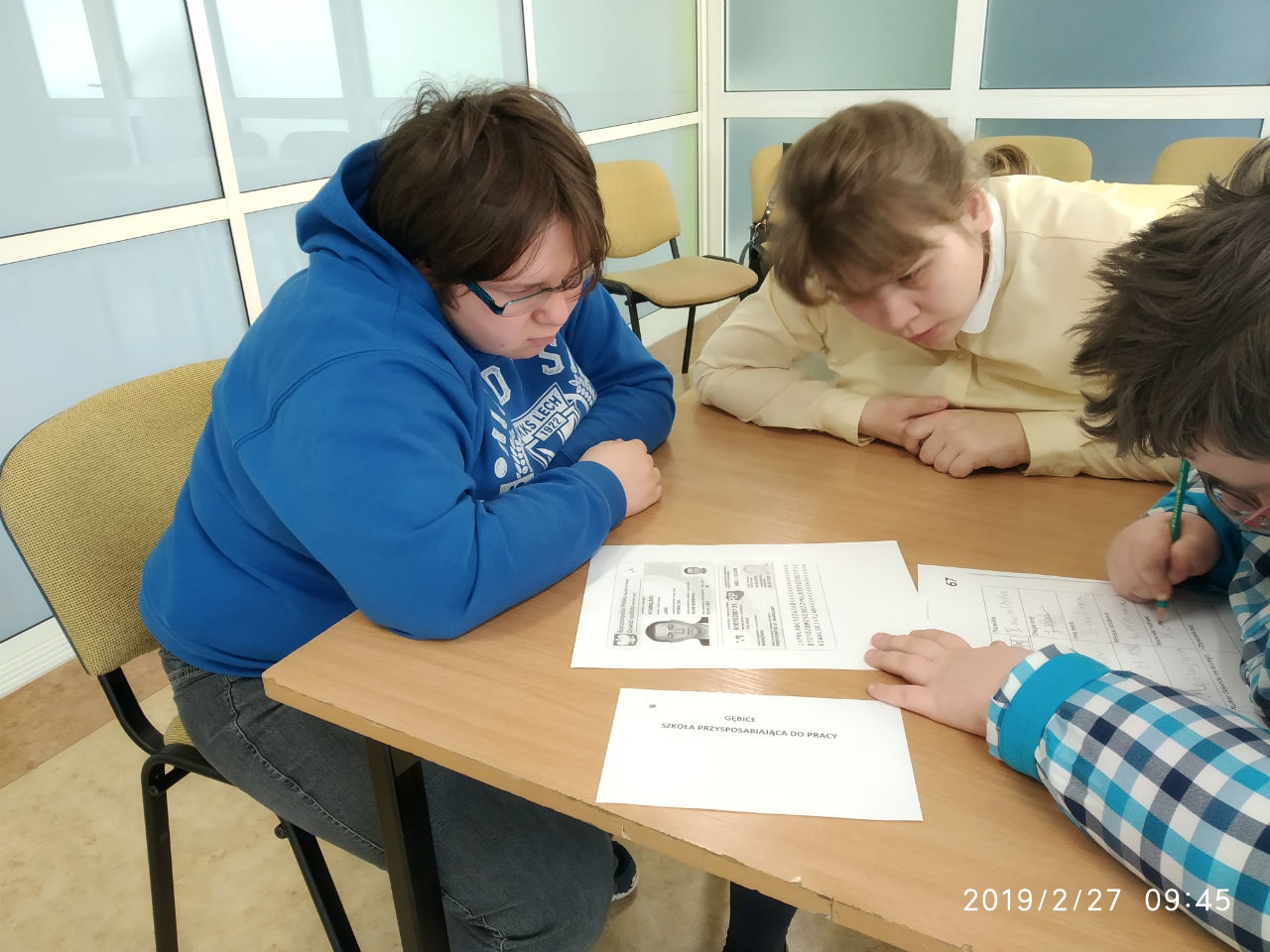 27 lutego uczniowie Szkoły Przysposabiającej do Pracy z Gębickiej Kornelówki: Jankowska Sylwia, Urycka Weronika i Walczak Gracjan wzięli udział w Międzyszkolnym konkursie Wiedzy i Umiejętności zorganizowanym przez Ośrodek Szkolno –Wychowawczy w Wągrowcu.