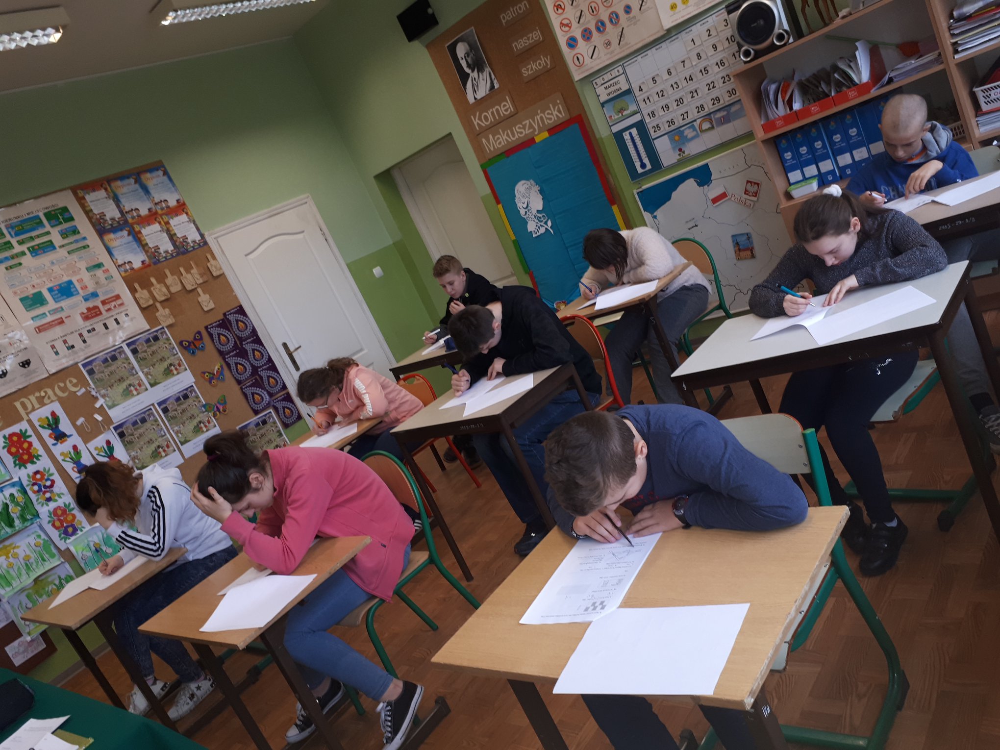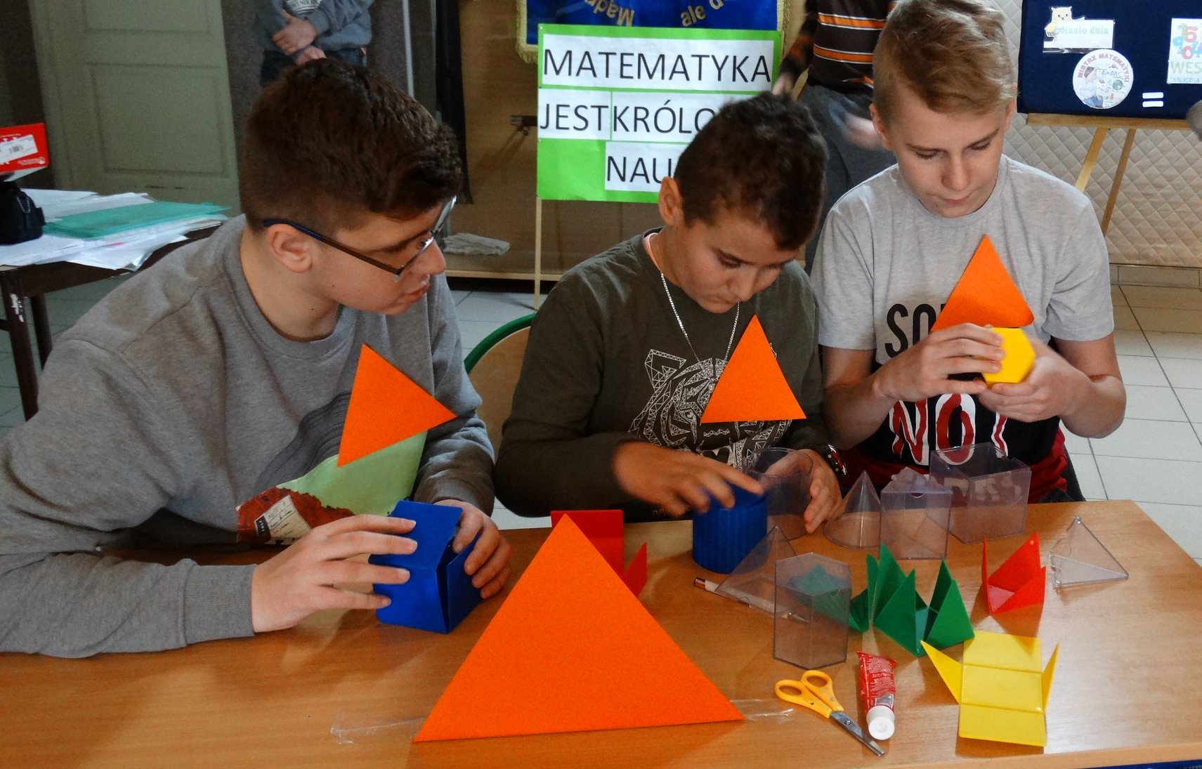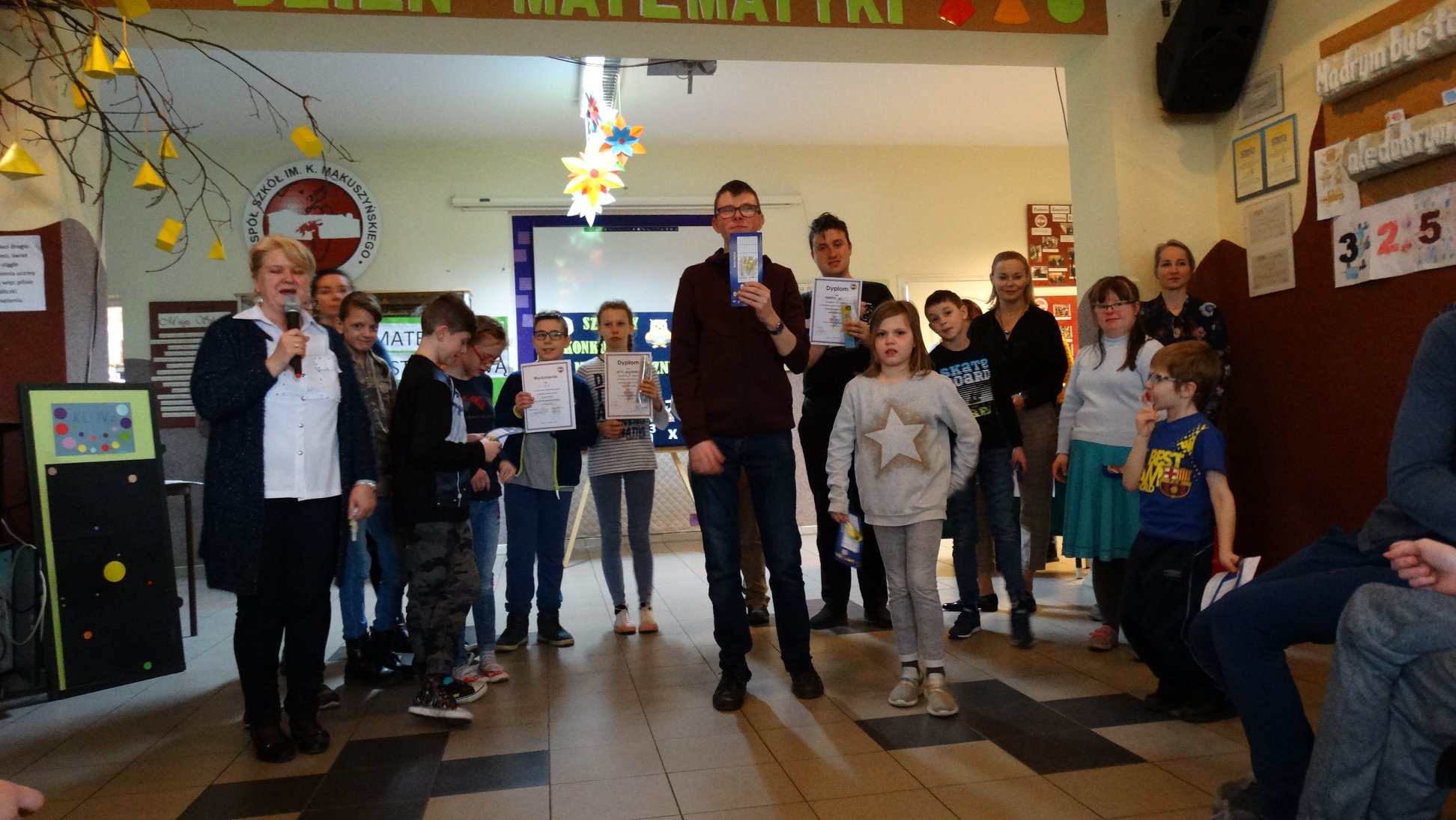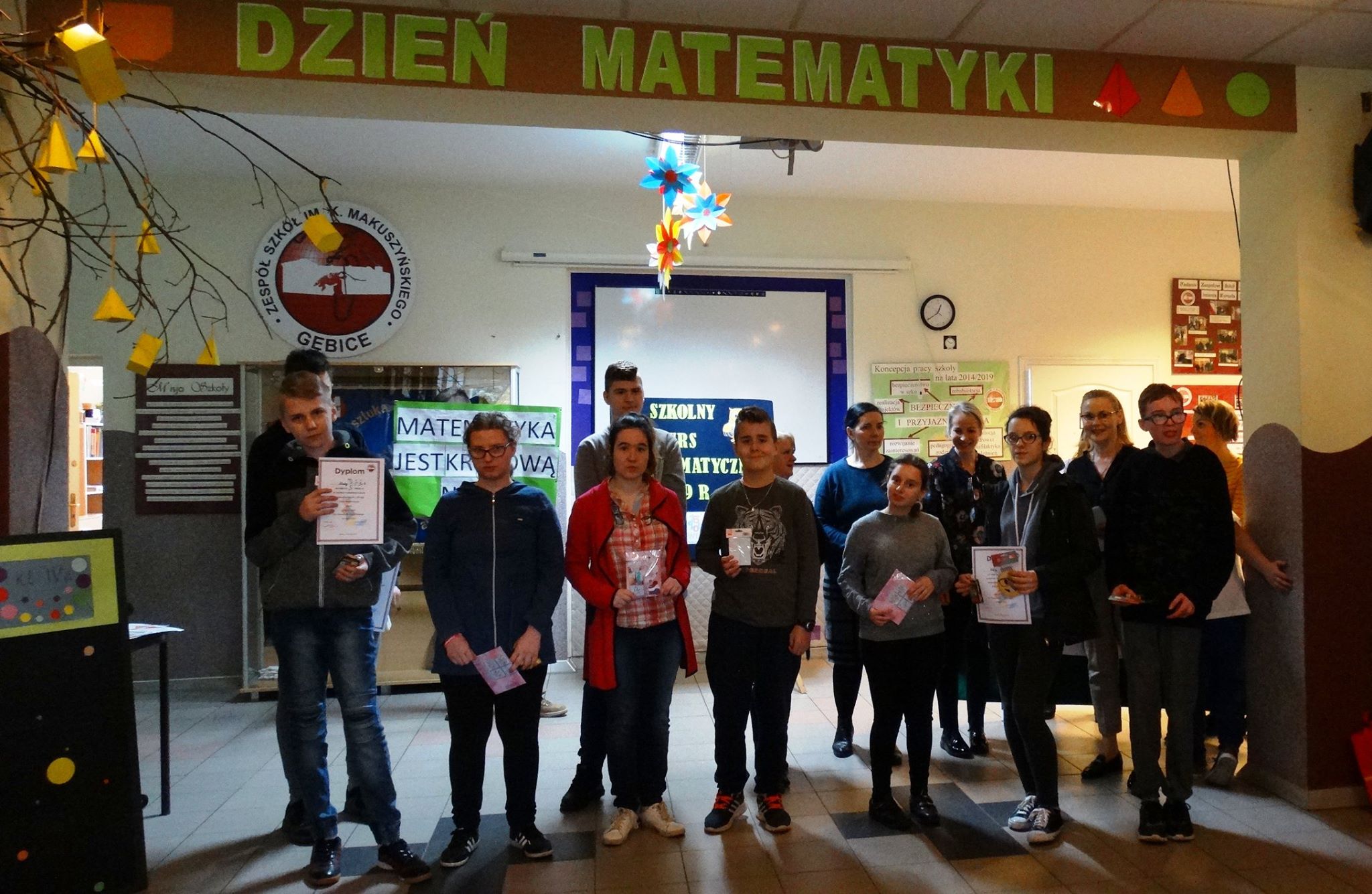Kilka dni wcześniej przeprowadzono także pisemny konkurs matematyczny, podczas którego wytypowano najlepszych matematyków w szkole, którymi zostali: Krzysztof Ślęga z kl.VIs, na drugim miejscu - Bartosz Grenda z kl. VI, trzecie miejsce uzyskała Małgorzata Soloch, a wyróżnienie otrzymała Kinga Chmura.
