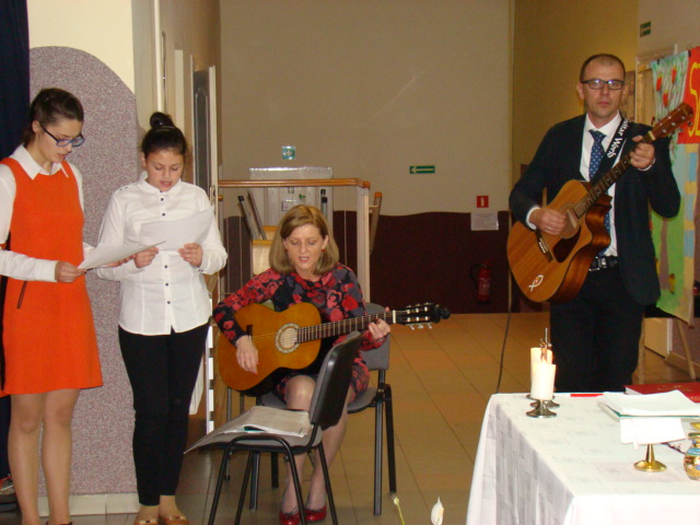 Obchody uroczystości z okazji Dnia Edukacji Narodowej w gębickiej Kornelówce zainaugurowała msza święta, odprawiona w holu szkoły przez naszego katechetę ks. Rafała Dąbrowicza. Cała społeczność szkolna modliła się o zdrowie i siły dla nauczycieli, by każdego dnia radośnie i z zaangażowaniem stawali naprzeciwko swoich uczniów. Po krótkiej przerwie technicznej wprowadzono sztandar szkoły, odśpiewano hymn państwowy i rozpoczęła się akademia.