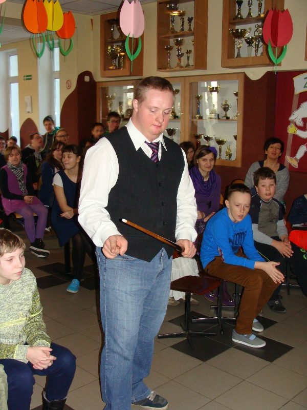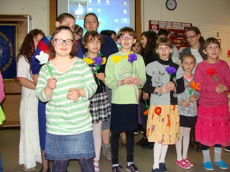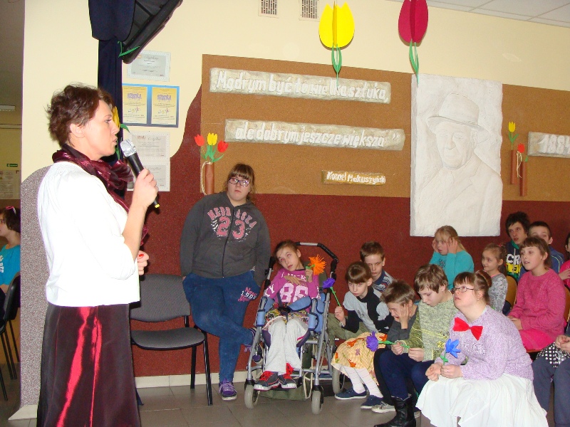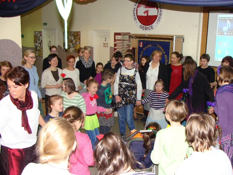 Z tej okazji odbył się także apel, podczas którego uczniowie przedstawili krótką część artystyczną dotyczącą kobiet - tych dużych i tych małych. Recytacja humorystycznych wierszy została ubarwiona tanecznymi występami oraz grą na instrumentach: dzwonkach i pałeczkach. Po złożeniu życzeń wszystkim paniom i dziewczynkom wręczono kolorowe kwiaty z bibuły.