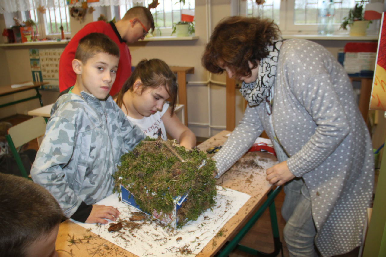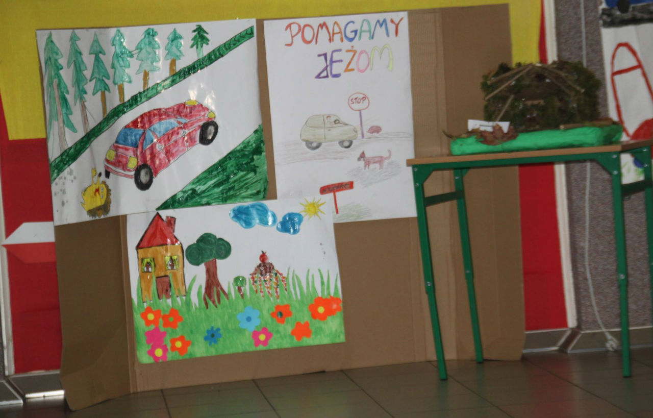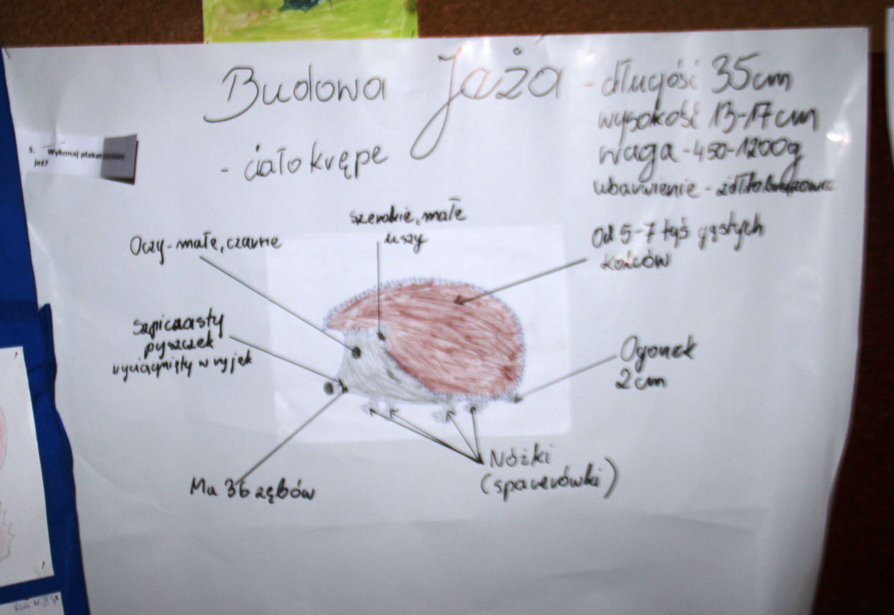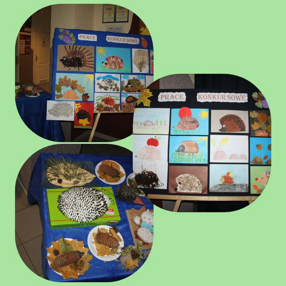 Po tych informacjach przedstawiciele klas losowali zadania, a najmłodsi z naszej szkoły brali udział w podchodach śladami jeży. Po prezentacji prac i występach nastąpiło rozstrzygnięcie konkursu plastycznego pt „Mój kolczasty przyjaciel jeż", w którym nagrody otrzymali: