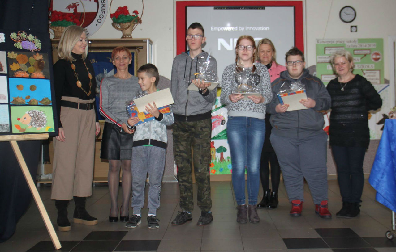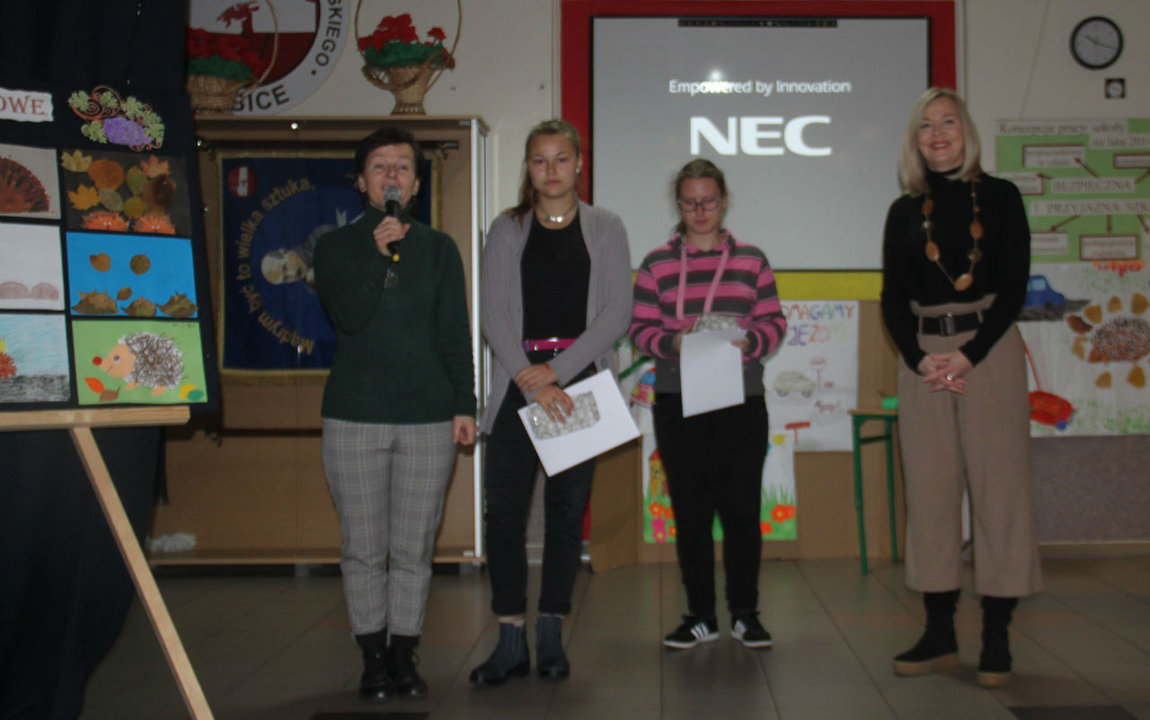 Na zakończenie, z racji, że wyraz jeż zawiera trudność ortograficzną, nastąpiło również podsumowanie Szkolnego Konkursu Ortograficznego dla klas gimnazjalnych, drugie miejsce zajęła Małgorzata Soloch, a trzecie Dominika Brączkowska.