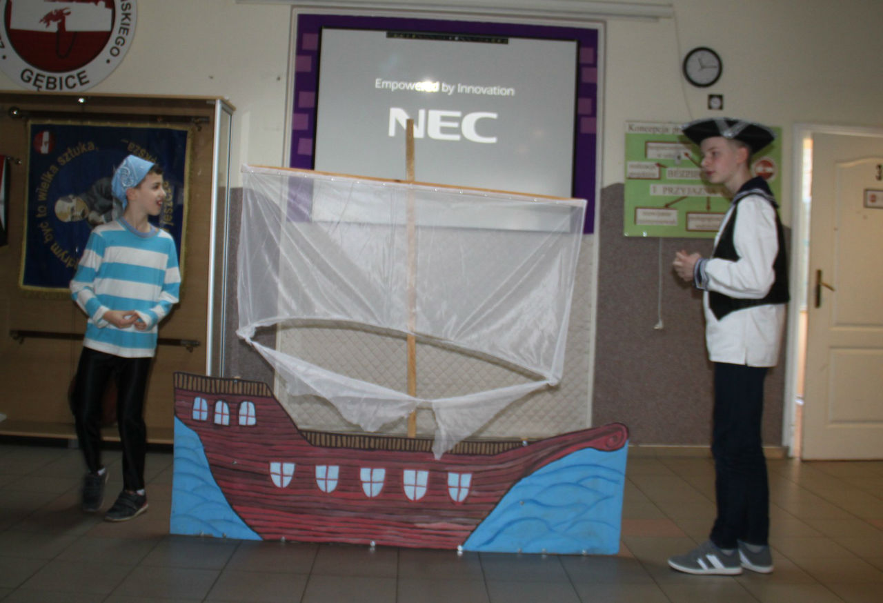 Bardzo ciekawe i wzruszające było zaprezentowanie umiejętności teatralnych uczniów z autyzmem. Zaprezentowali oni krótką historyjkę zatytułowaną „Morska przygoda".