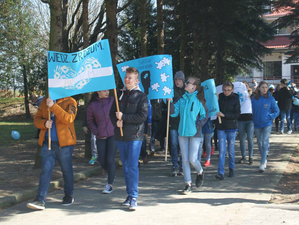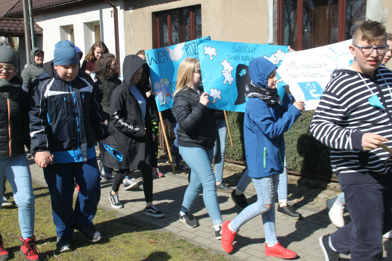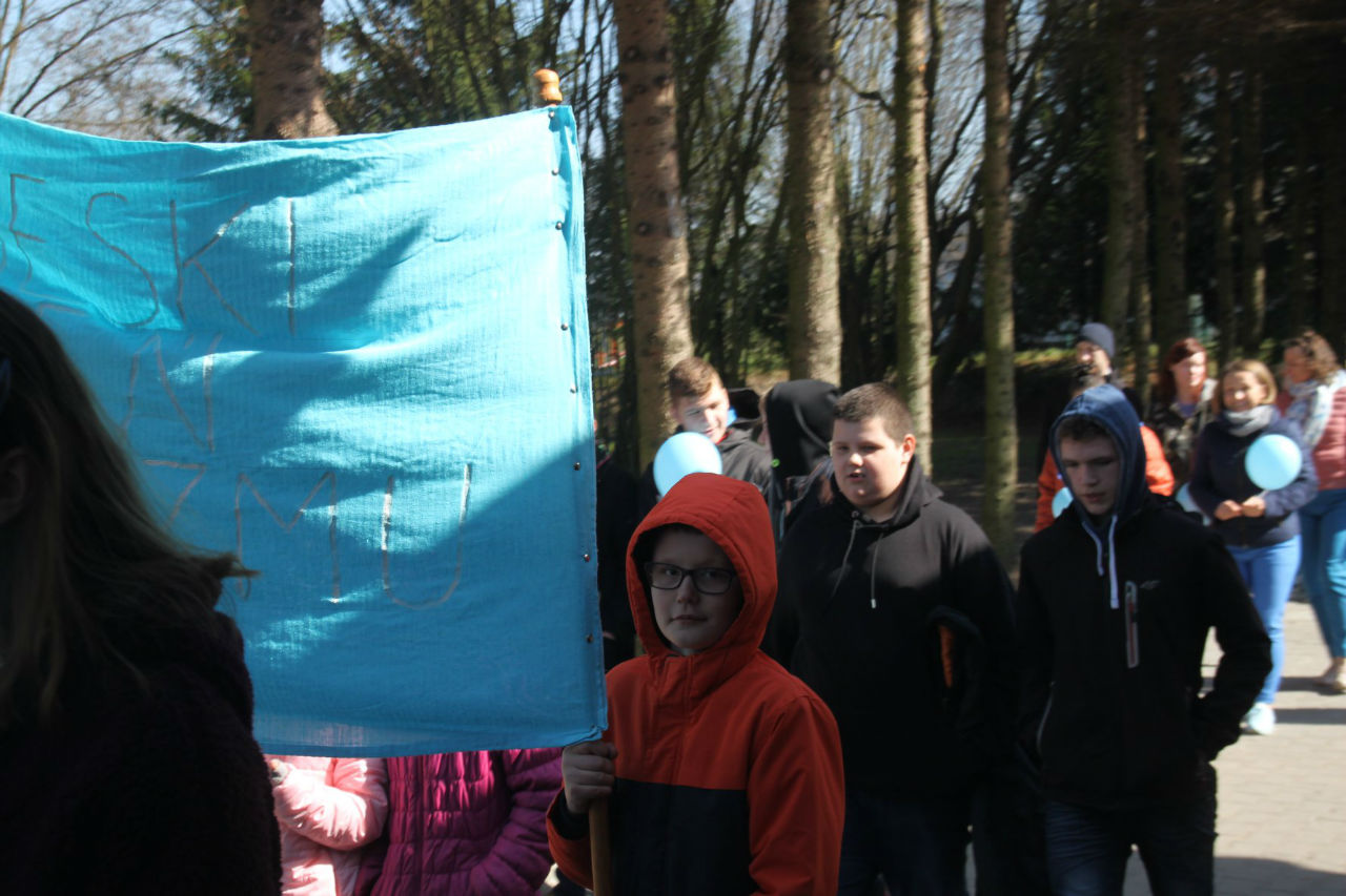 Tradycyjnie już poruszenie wywołał przemarsz po Gębicach, podczas którego każda klasa prezentowała własnoręcznie wykonany plakat i pozdrawiała balonami w kolorze niebieskim.