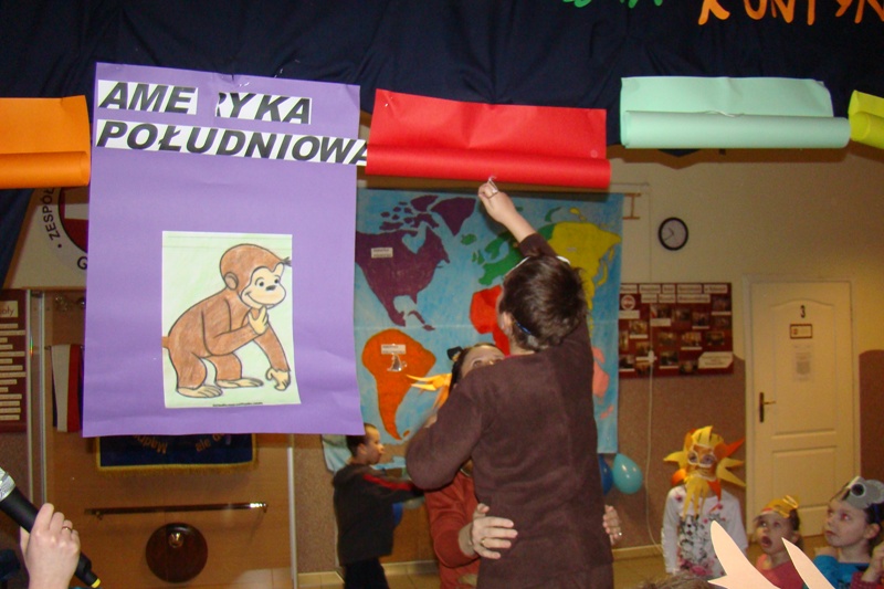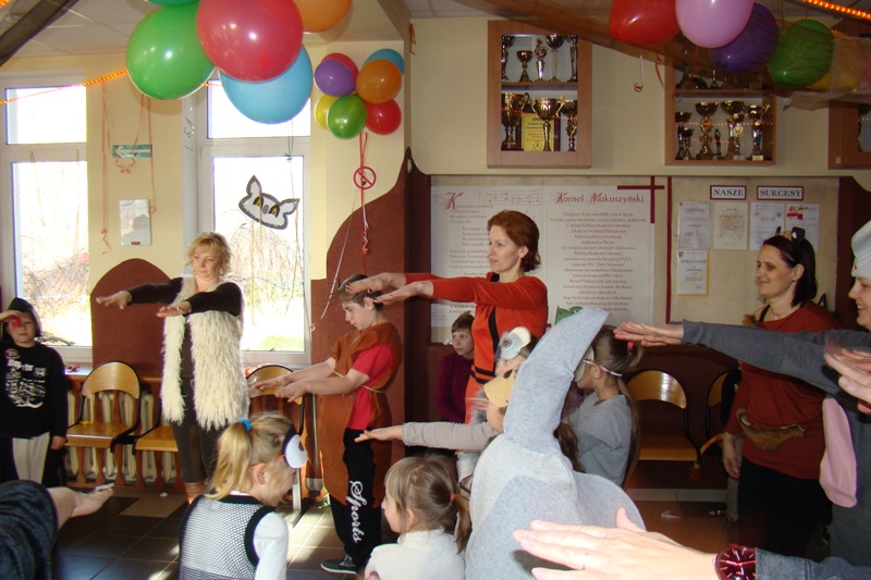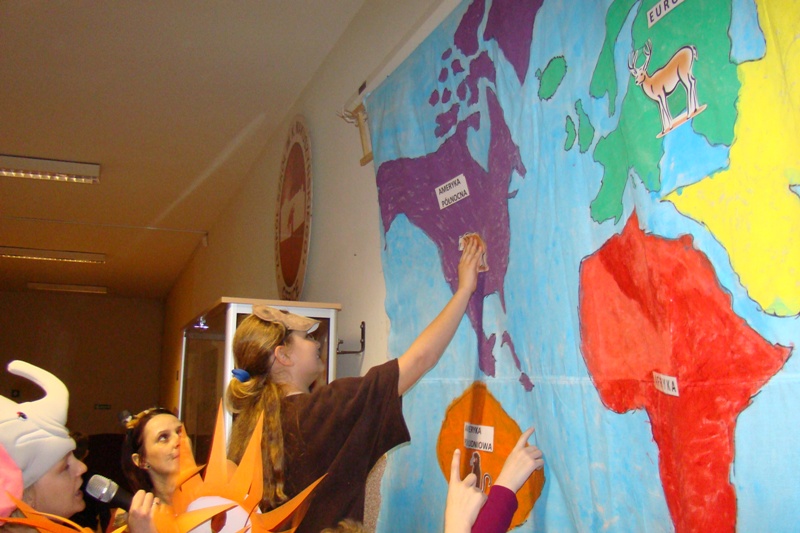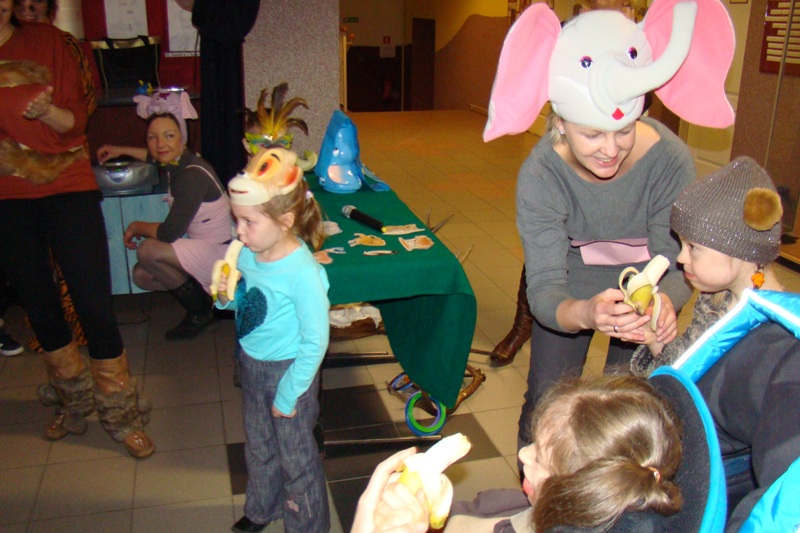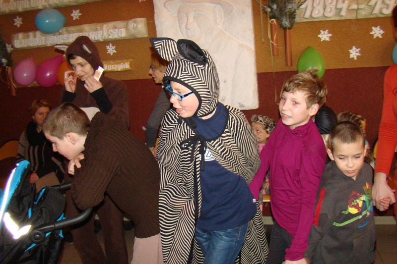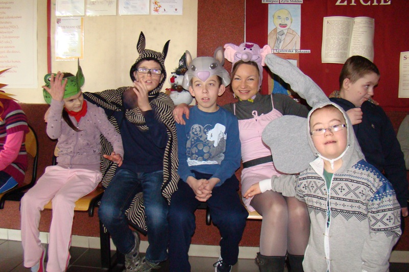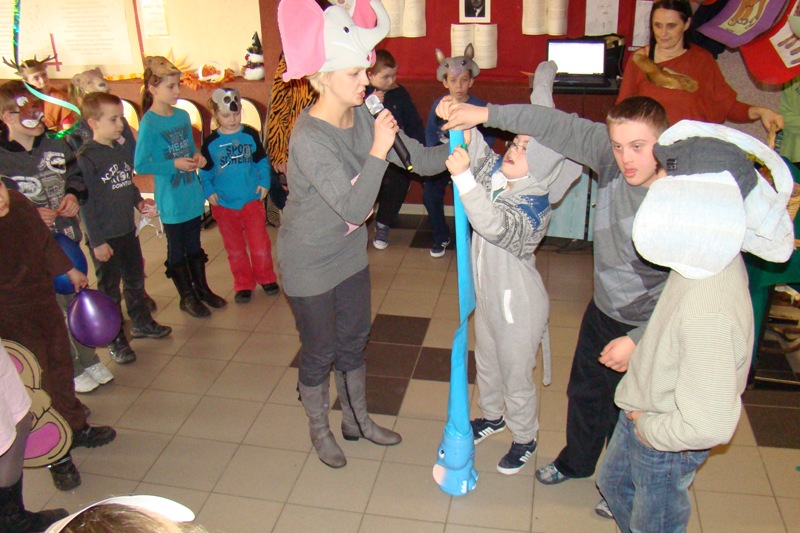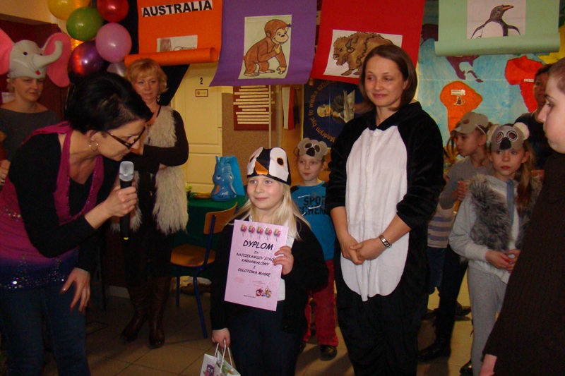 Na bal uczniowie przybyli w pięknych i oryginalnych strojach, przedstawiających różne zwierzęta zamieszkujące wszystkie kontynenty naszego globu. We wspólnym tańcu można było zobaczyć małpki, słonie, pingwiny, lwy, jelenie, niedźwiedzie i misie koala. W rytmie największych przebojów, prezentowanych przez DJ, wszyscy bawili się doskonale. Oddechem w tańcu okazały się, przygotowane przez organizatorki balu: p. Agnieszkę Roszak, p. Iwonę Lokert, p. Karolinę Rybarczyk, p. Annę Korczyc i p. M. Fąka, liczne konkursy, które tematycznie nawiązywały do hasła balu. Szczególnym zainteresowaniem cieszyły się konkurencje: najgłośniejszy ryk lwa, rzuty ringo na poroże jelenia, zjadanie bananów na czas, taniec pingwina czy polowanie na starego niedźwiedzia. Zwycięzców obdarowywano czekoladkami i cukierkami .