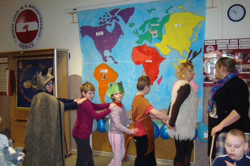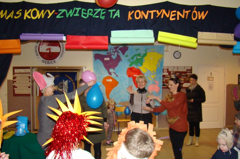 Karnawał to doskonały czas na organizowanie zabaw i balów nie tylko dla dorosłych, ale również i dla dzieci. W naszej szkole 18 lutego br. odbył się Bal Maskowy pod hasłem: Zwierzęta kontynentów. Ideą balu była szeroko rozumiana integracja. Jego uczestnikami byli uczniowie klas I-III Szkoły Podstawowej w Gębicach, przedszkolaki z Publicznego Przedszkola w Gębicach oraz dzieci i młodzież z Zespołu Szkół Specjalnych w Gębicach. Tego dnia nie było jednak ważne, kto przyszedł z jakiej szkoły ? najważniejsze było to, że mogliśmy wspólnie bawić się i stworzyć miłą oraz przyjazną atmosferę.