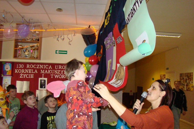 Tego dnia hol szkoły, za sprawą organizatorów, przemienił się w istną dżunglę ? liany z serpentyn, świetlne węże, balony, kwiaty zapraszały gości do królestwa zwierząt.