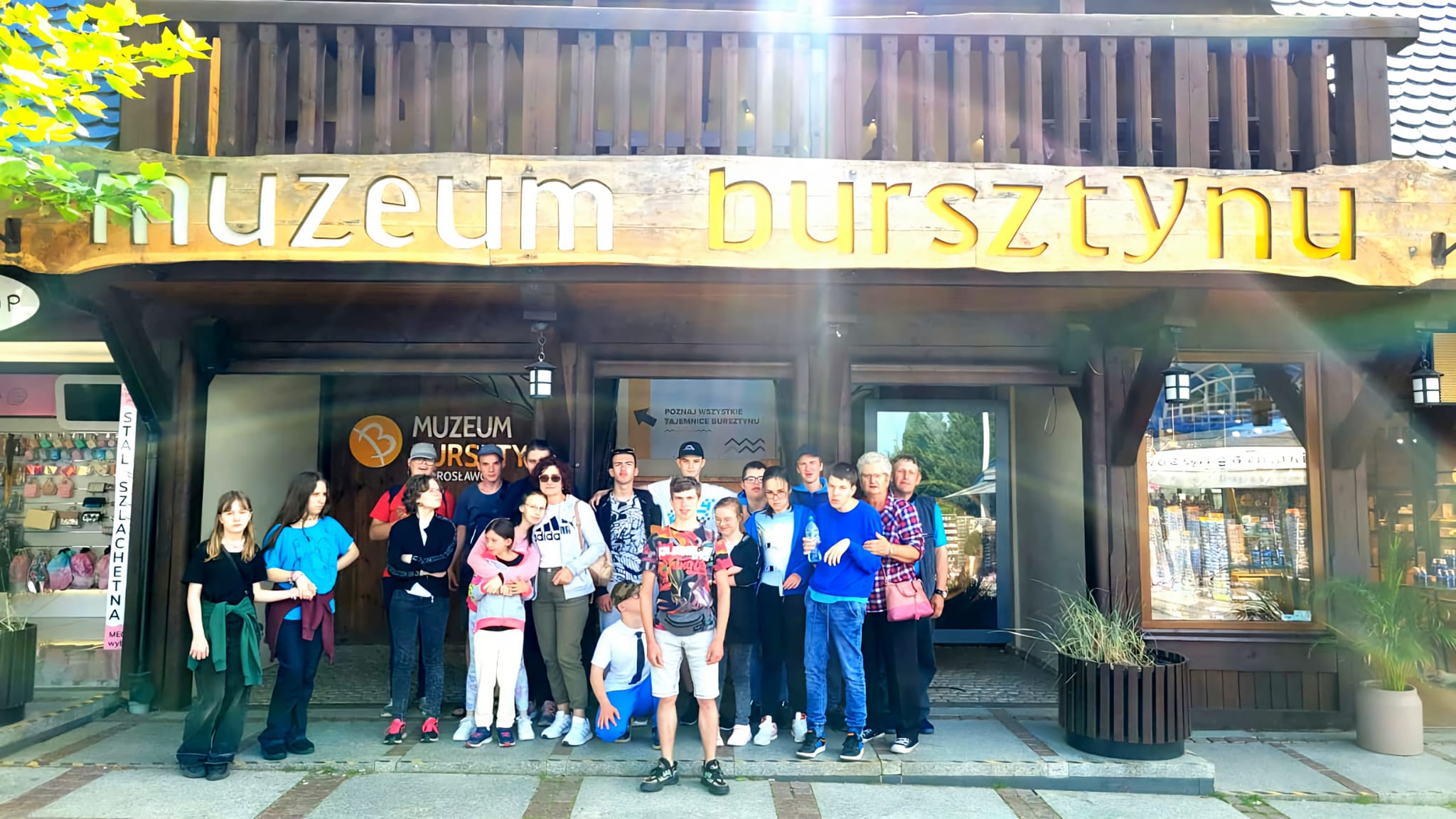 "Wyrzucony po sztormie na plażę kamień lekki, ciepły w dotyku, który pali się wydzielając aromatyczny dym i który potarty przyciąga lekkie słomki, skrawki papieru, włosy; złocisty grobowiec szczątków owadów i roślin - BURSZTYN, od tysięcy lat fascynuje wyobraźnię ludzką". Taką lekcją zaczęliśmy tegoroczną zieloną szkołę. Na niewielkim ale bardzo klimatycznym deptaku Jarosławca zwiedziliśmy Muzeum Bursztynu w Jaroslawcu i mogliśmy raczyć się zapachem wykonanych z jego zawartością pachnideł w przymuzealnym sklepiku. Zaledwie na przeciwko dumnie wznosiła się ku chmurom latarnia o niewielu, bo 122 schodach, więc zdobycie jej nie wymagało wiele trudu ale widok wart był wyzwania. Fotki w charakterystycznych miejscach i powrót do oddalonego o kilometr ośrodka Barka. Po drodze wielu uśmiechniętych i miłych ludzi - takie miejscówki lubimy najbardziej. Wczesna kolacja w szwedzkim stylu i bardzo obfitym wyborze, każdy odnalazł lubiane smaki. Potem błyskawiczne zakwaterowanie w domkach, które zawsze budzi najwięcej emocji i w szybkim tempie ruszyliśmy na pobliską plażę aby ujrzeć zachód słońca Ku naszemu zdumieniu woda w Bałtyku ciepła i Neptun z Prozerpiną na plaży. Tradycyjny już chrzest tych, którzy przyjechali z nami po raz pierwszy, chwila zadumy... ach było tak "zielono".