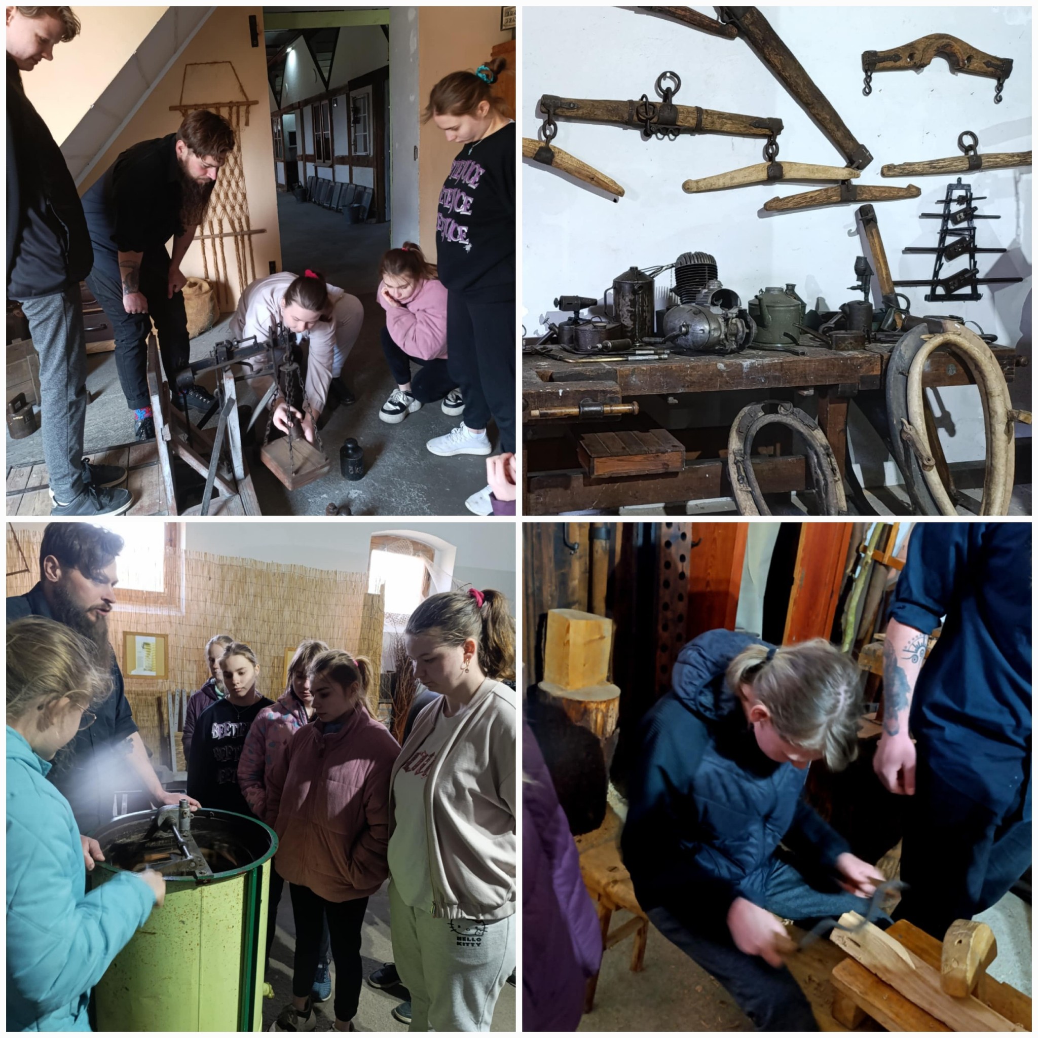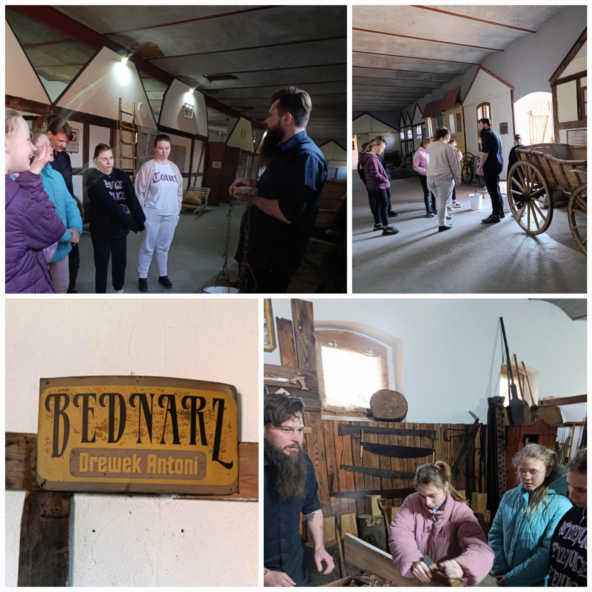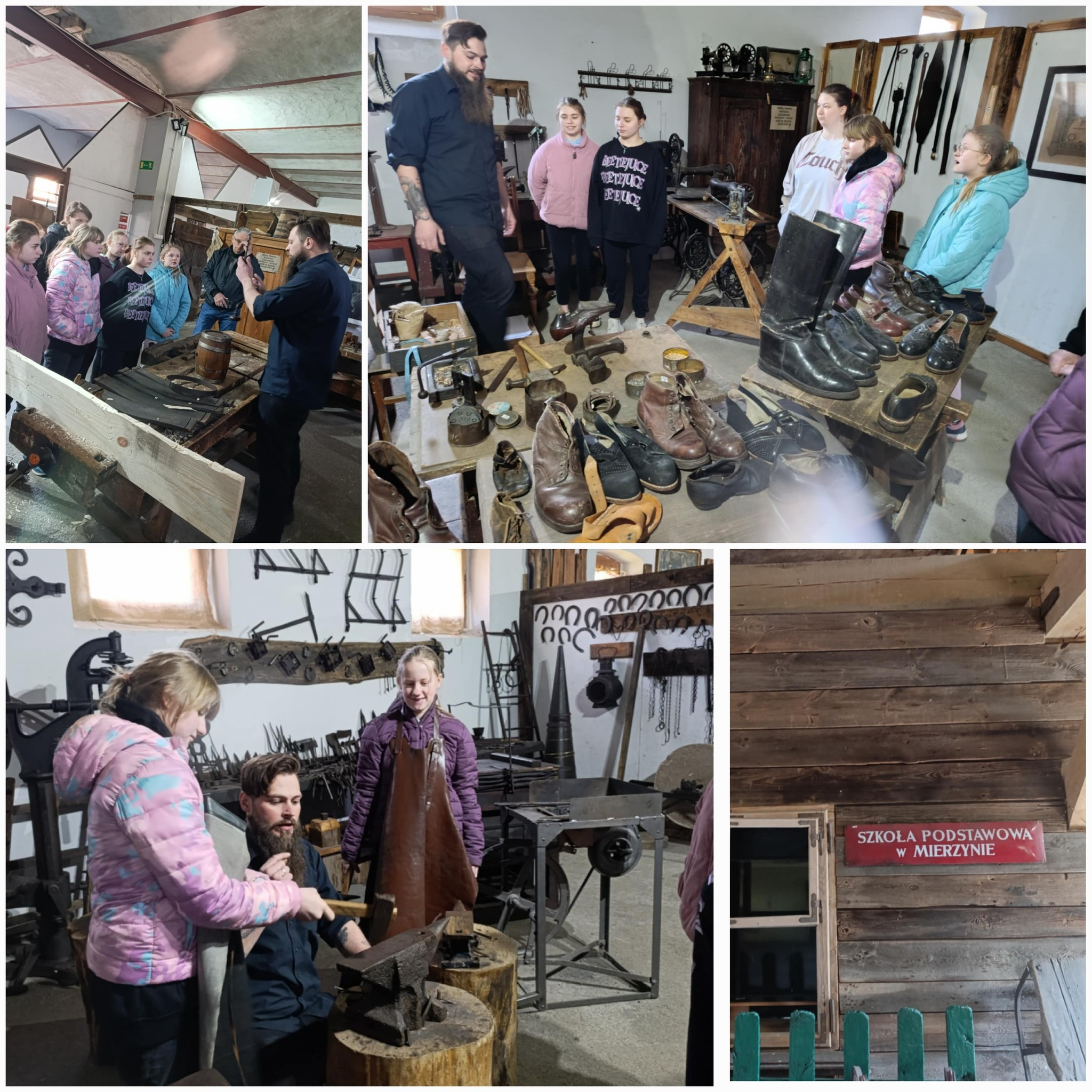 Klasa V wraz z opiekunami udała się na wycieczkę szkolną do Centrum Edukacji Regionalnej i Przyrodniczej w Mniszkach. Podczas zwiedzania skansenu pan przewodnik opowiadał nam o ginących zawodach. Odwiedziliśmy kowala, szewca, pszczelarza, praczkę, sprzedawcę i sklep kolonialny. Wzięliśmy też udział w warsztatach, podczas których wykonaliśmy świeczkę z wosku pszczelego oraz wózek drabiniasty z wikliny. Z pewnością nasze wytwory pięknie będą zdobiły nasze stoły podczas zbliżających się Świąt Wielkanocnych. Czas minął nam bardzo miło, szybko i twórczo. Dla wszystkich uczestników wycieczki była to bardzo przyjemna i wyjątkowa lekcja historii.