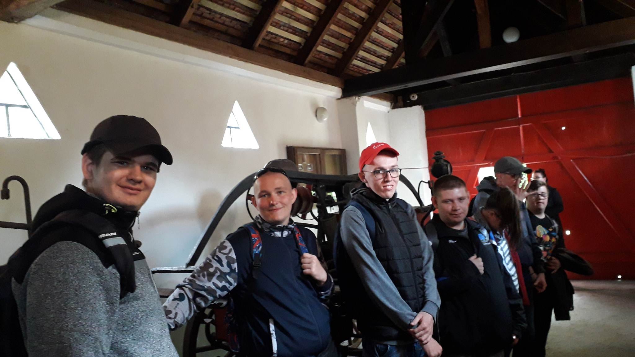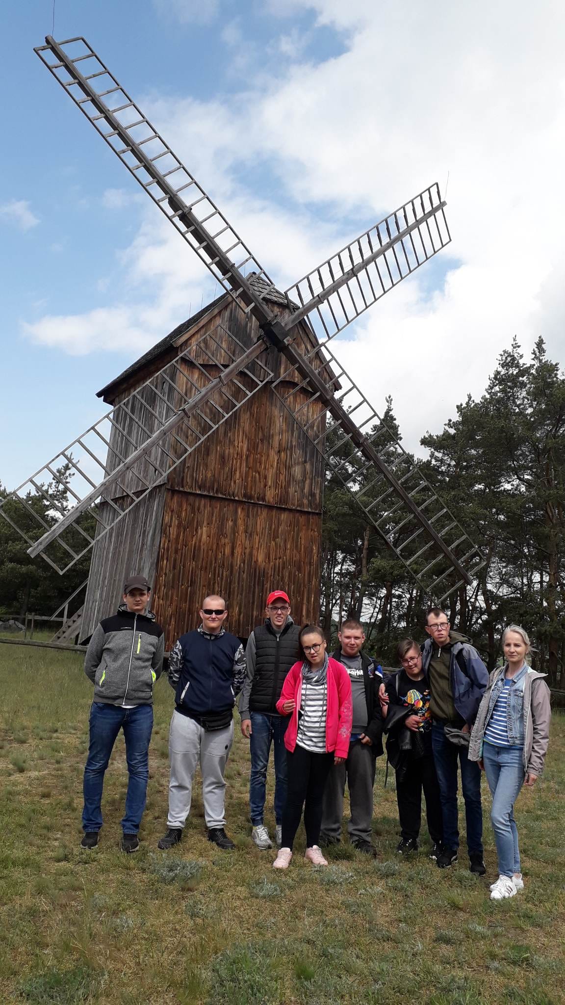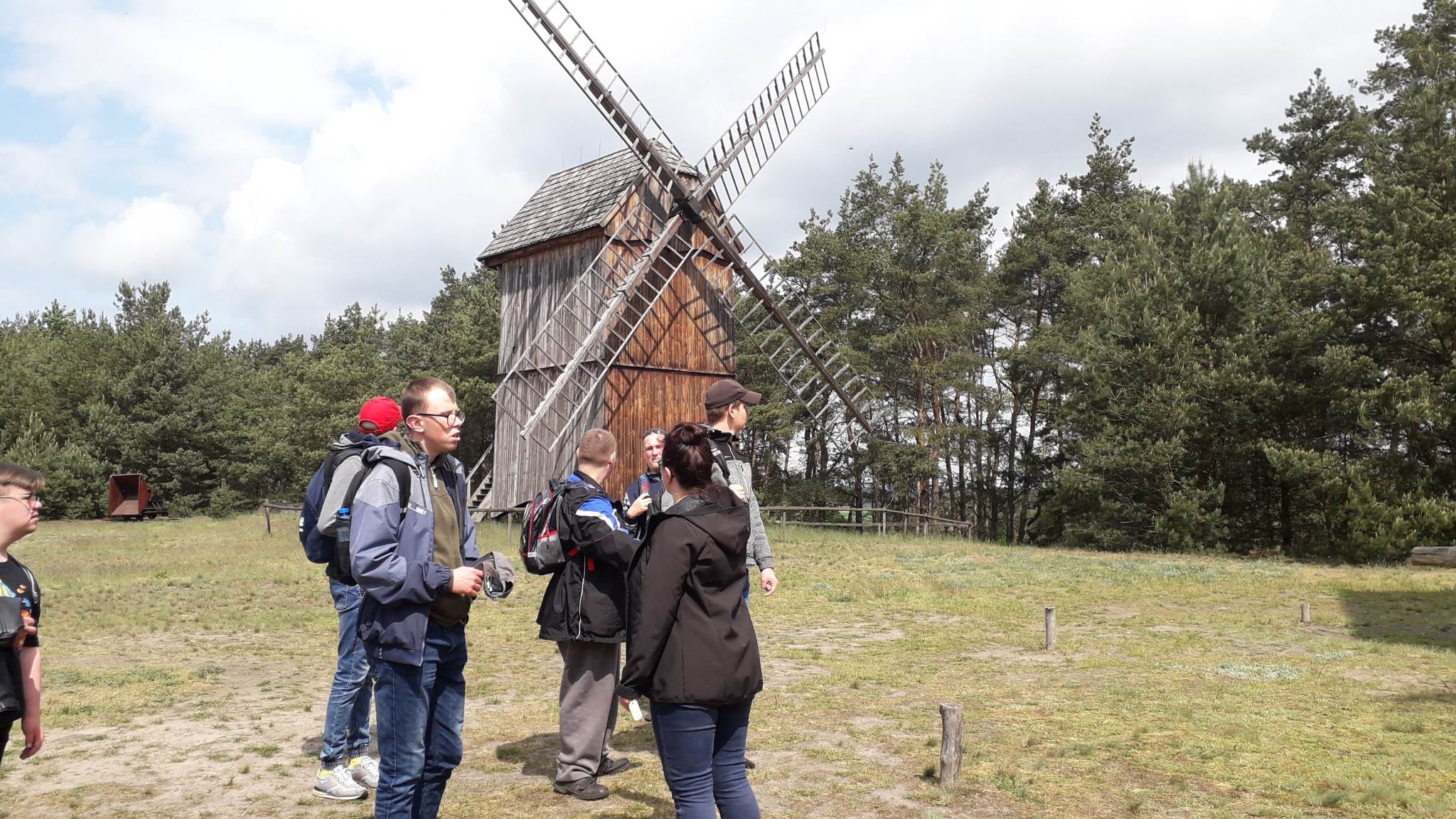 W dniu dzisiejszym uczniowie kl. II szkoły przysposabiającej do pracy wraz z nauczycielami wybrali się na wycieczkę do skansenu w Osieku nad Notecią. Jest to miejsce, które w wyjątkowy sposób przybliża historię, obyczaje oraz lokalną kulturę i tradycję Krajny, Pałuk i Puszczy Noteckiej. Na jego terenie, który liczy sobie aż 13 hektarów znajduje się blisko 30 budynków, zabudowań gospodarczych i mniejszych budowli, charakterystycznych dla krajobrazu tych regionów. Duże wrażenie zrobiły na nas 3 wiatraki, pochodzące z niedalekich miejscowości. Koźlak z Chojny, pochodzący z 1865 roku, Paltrak z Żelic, sięgający historią do 2. poł. XIX wieku i drewniany holender z Gromadna, (1897). W zagrodach odtwarzane są sytuacje z końca XIX i początków XX w. . Jedną z nich, w której nasi uczniowie brali udział był wypiek wafli ( obecnie gofrów) Sposób wypiekania tych wafli odbywał się na specjalnej wafelnicy przeznaczonej do wypieku wafli bezpośrednio na ogniu pieca kaflowego. Na wolnym powietrzu pokazano układ dawnej wsi poprzez odtworzenie zabytkowych zagród, a także pojedynczych obiektów mieszkalnych, gospodarczych, przemysłowych i usługowych oraz sakralnych. W skansenie znajduje się także chałupa z Boruszyna z przełomu XVIII i XIXw., rodzinnej miejscowości Jakuba ucznia naszej klasy. Wyposażenie poszczególnych zagród i pojedynczych chat zróżnicowano pod względem sytuacji majątkowej, statusu społecznego, wykonywanych w zagrodzie zajęć oraz czasu, jakiego ekspozycja dotyczy. Uczniowie z ciekawością przyglądali się eksponatom i różnym narzędziom, które w prosty sposób przybliżyły im część historii i kultury naszego regionu.