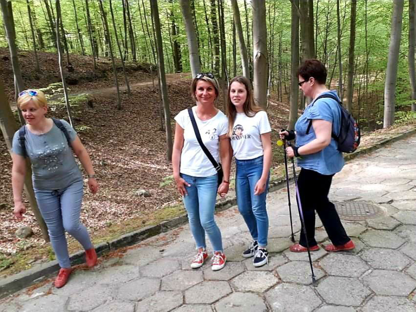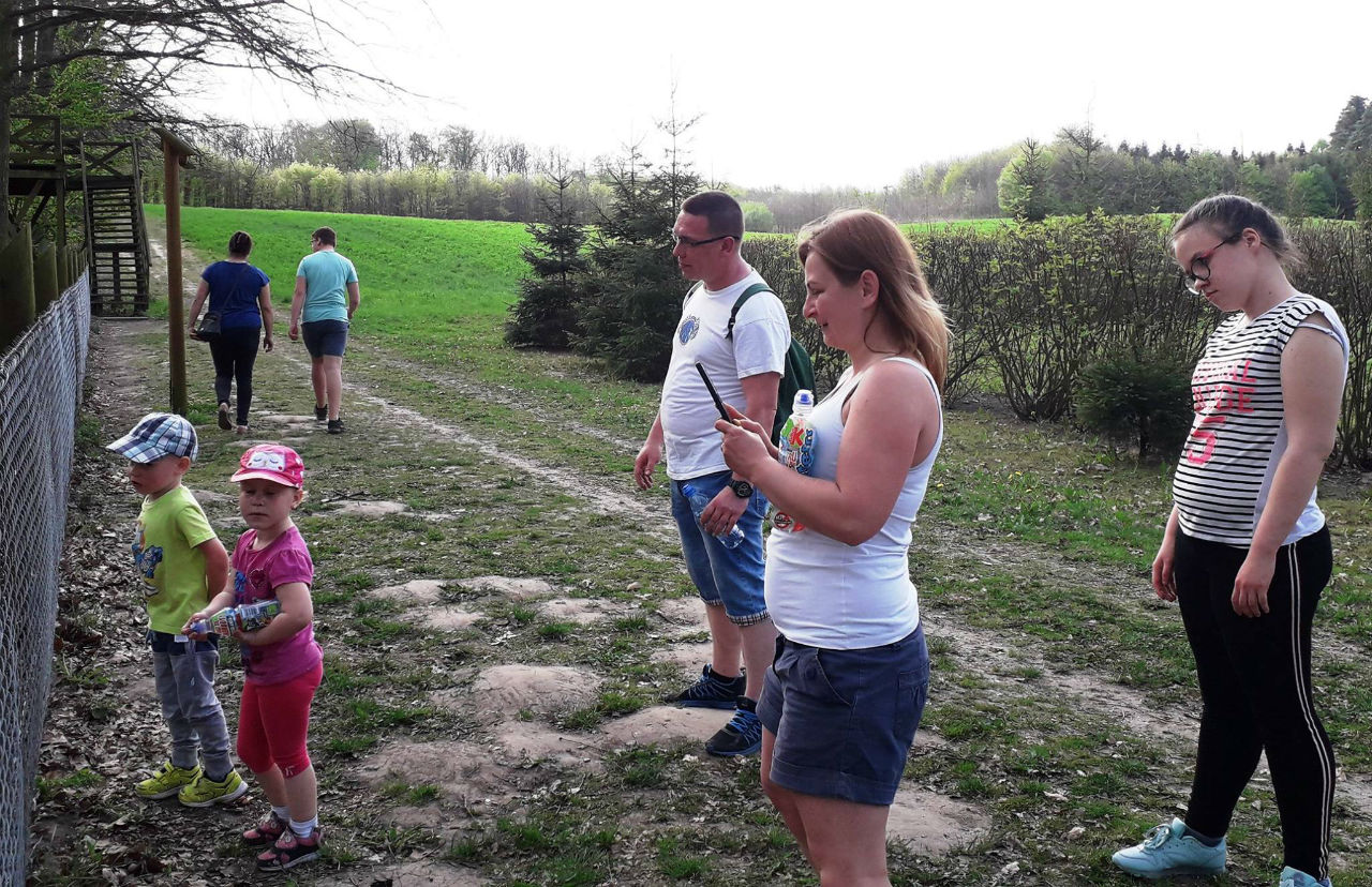 Cieszyliśmy się piękną pogodą i rozwijającą się zielenią. W zagrodzie dziczej dzieci mogły obserwować igraszki małych dzików - warchlaków oraz przypomniały sobie wiersz Jana Brzechwy „Dzik jest dziki, dzik jest zły...." Po powrocie czekał na nas pan inż. Michał Standio - pracownik Nadleśnictwa Krucz, który oprowadził nas po nowoczesnym Centrum Promocji Lasów Państwowych. W Sali Wystawy Historycznej poznaliśmy historię Lasów Państwowych oraz rodziny Hochbergów – założycieli zamku w Goraju. Mogliśmy też przyjrzeć się multimedialnej mapie Polski z podświetlonymi parkami narodowymi, pasmami i szczytami górskimi, oraz jeziorami i rzekami. W Sali Wystawy Przyrodniczej podziwialiśmy dioramy, oparte o cykle rozwojowe lasu i pory roku. Przemyślana aranżacja sali, wykorzystanie światła i dźwięków zaczerpniętych wprost ze środowiska naturalnego sprawiła, że znowu poczuliśmy się, jak na leśnym szlaku.