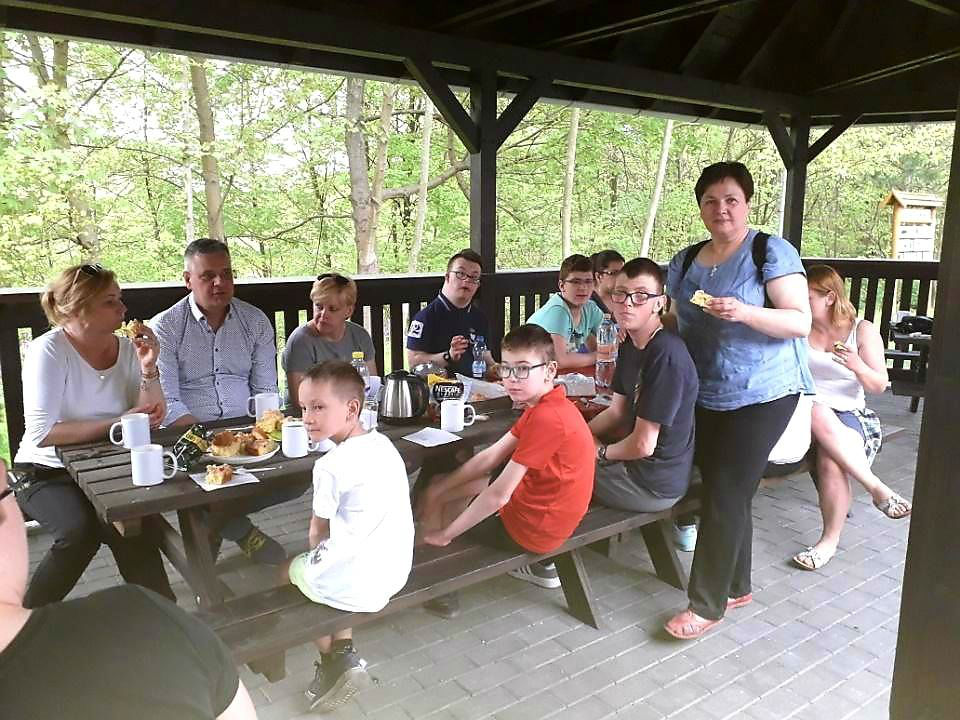 Rajd zakończyliśmy krótką biesiadą w myśliwskiej wiacie, kosztując dobrej kawy i herbaty oraz pysznych rogalików. Oczywiście nie zabrakło wody zgodnie z zasadami zdrowego odżywiania
