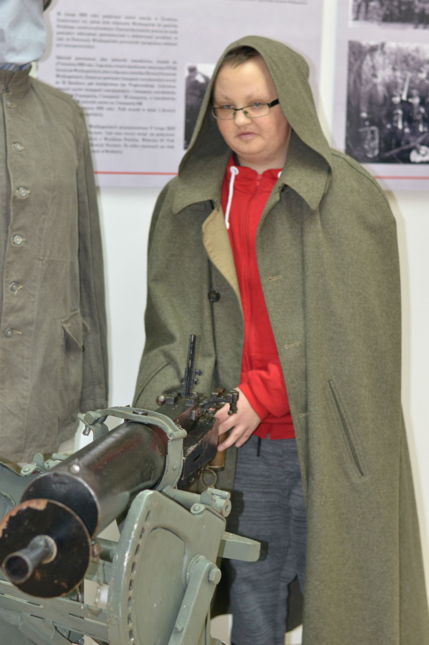 Zwiedzanie rozpoczęliśmy od multimedialnej prezentacji przebiegu powstania na ziemiach czarnkowskich. Kolejnym punktem była historyczna relacja pana przewodnika o przywódcach i początkach wybuchu powstania w Czarnkowie. Następnie zapoznaliśmy się ze zgromadzonymi w gablotach eksponatami, takimi jak: fotografie, legitymacje, odznaczenia, notatki, mundury Polaków, którzy służyli w armii pruskiej, oryginalny mundur wojsk wielkopolskich z 1919roku. Dużą atrakcją cieszył, się płaszcz wartowniczy, który można było przymierzać i pozować w nim do zdjęć. Naszą uwagę zwrócił również ciężki karabin maszynowy, którego obsługę przybliżył nam pan przewodnik. Ostatnim punktem naszej wizyty w muzeum było grupowe układanie tematycznych puzzli.